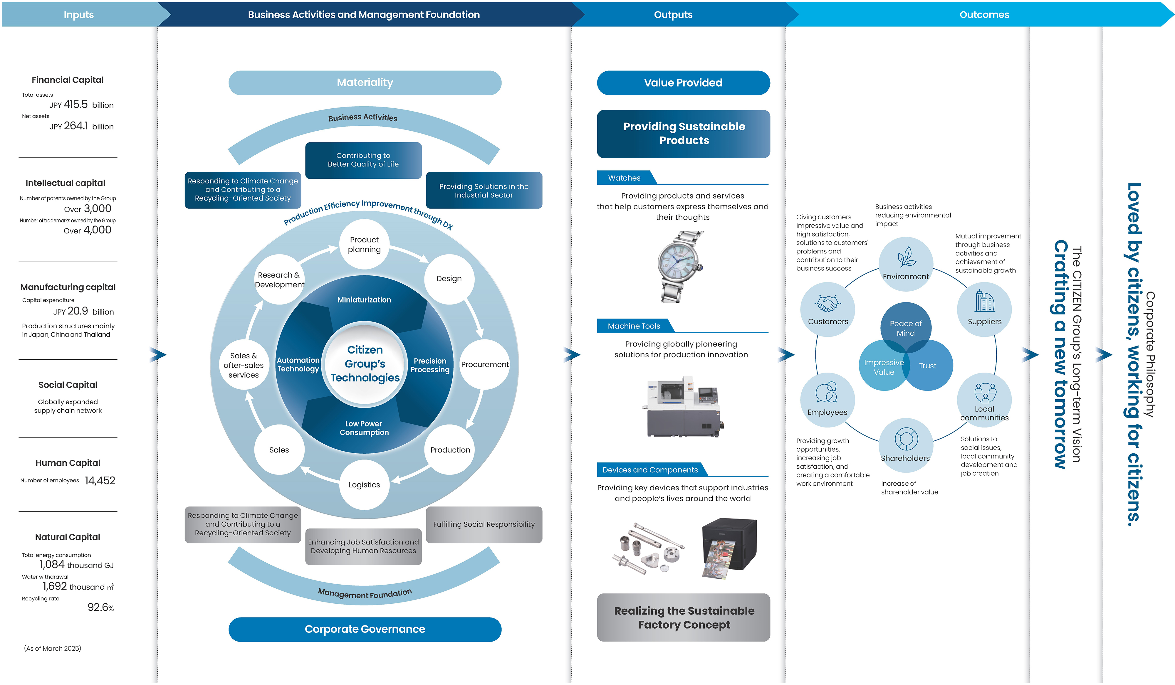More than a century since it was founded in 1918 with the desire to produce Japanese-made watches, the CITIZEN Group has evolved into a corporate entity engaged in a wide range of businesses.