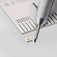 モバイル端末の虹彩認証や顔認証、暗視カメラなどに使用される世界最小クラス高出力赤外LED。次世代のセキュリティとして活躍。